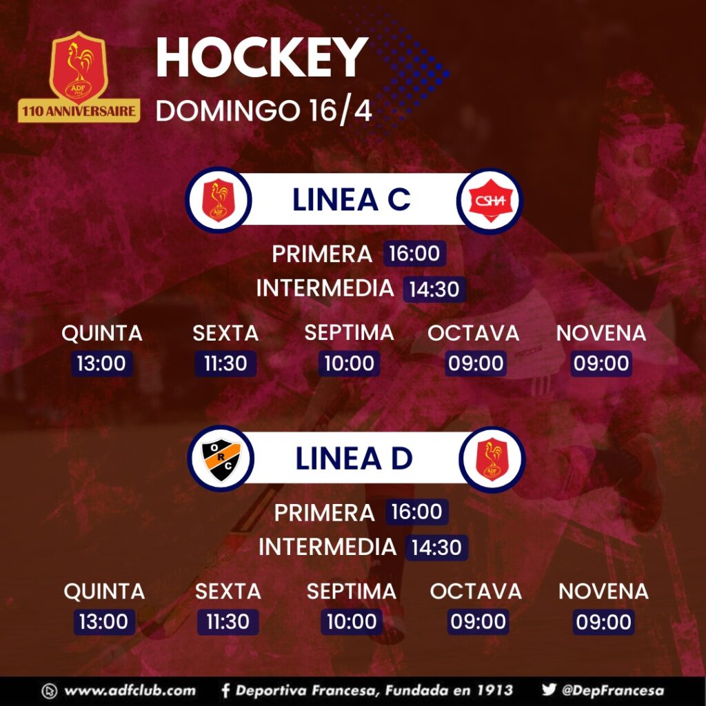 Cuarta, Décima, Hockey, Novena, Octava, Plantel Superior, Quinta, Séptima, SextaHorarios Hockey domingo 16/4 Deportiva Francesa / 14 abril, 2023