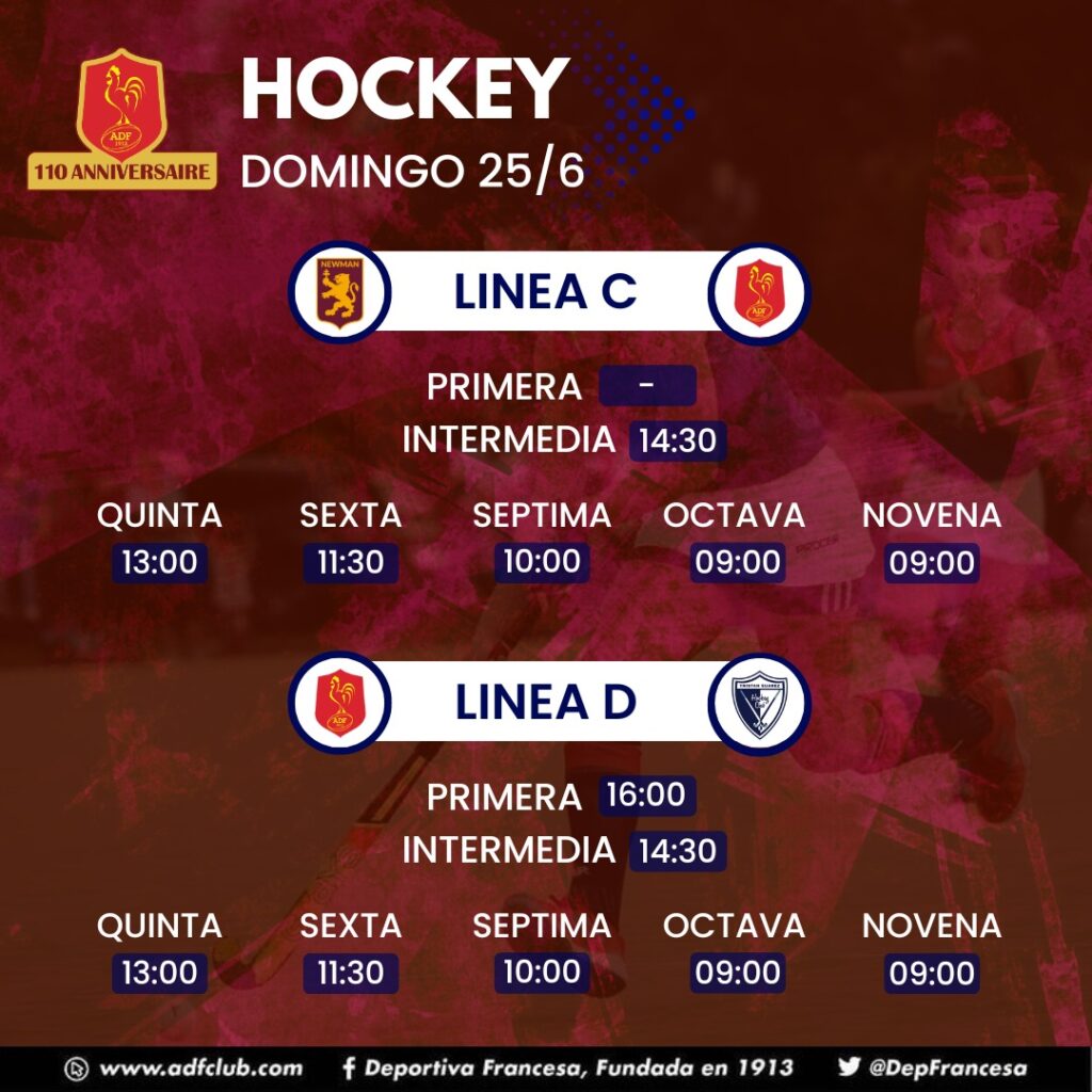 Cuarta, Décima, Hockey, Novena, Octava, Plantel Superior, Quinta, Séptima, SextaHockey – Horarios domingo 25/6 Deportiva Francesa / 23 junio, 2023