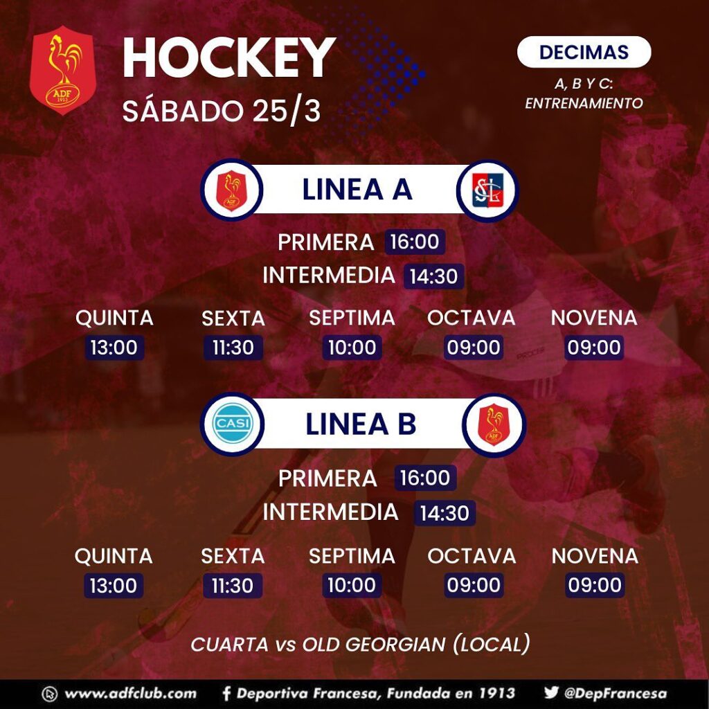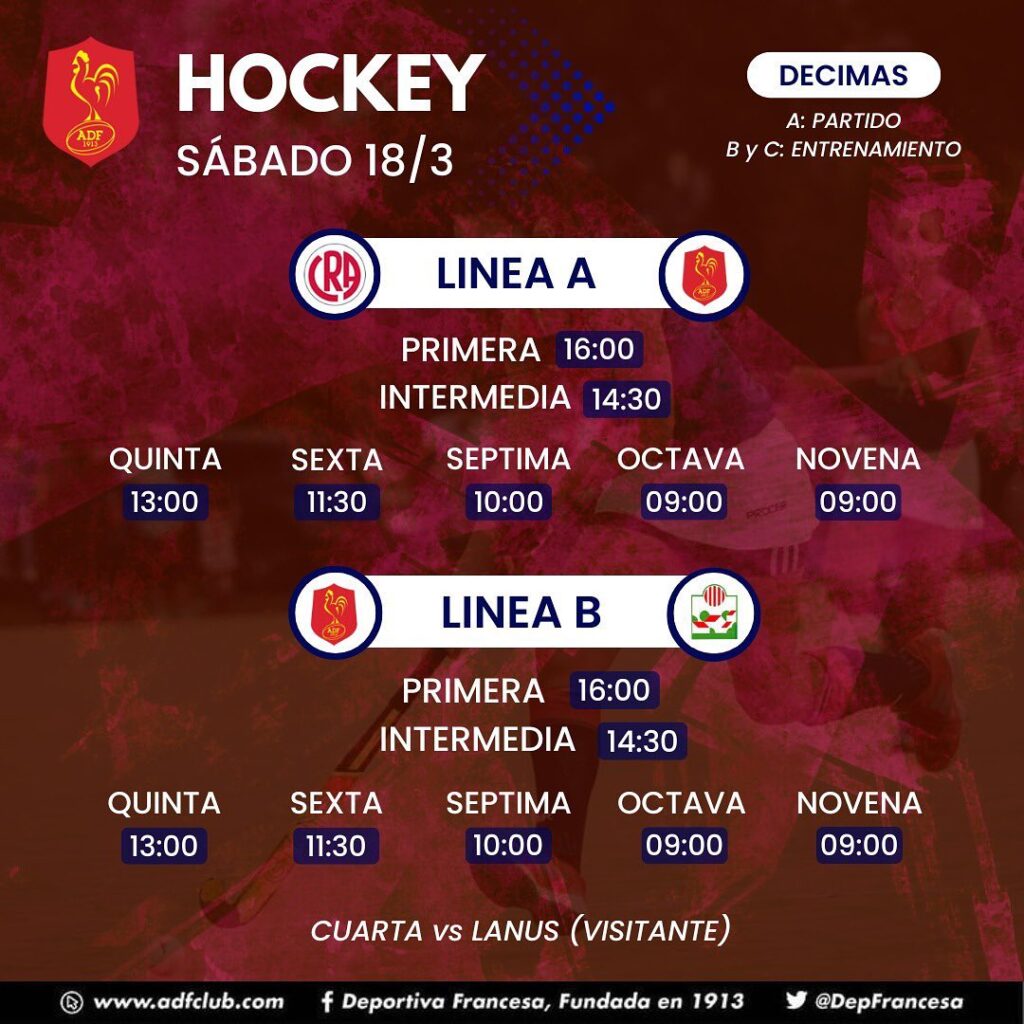 Se juega la fecha 2 de la primer ronda del torneo de @hockeybuenosaires ?: ? Línea A @adfhockey recibe a @clubsanluis.ok?Línea B @deportivafrancesab visita a @hockeycasi?Línea C @deportivafrancesac visita a @hinducluboficial para