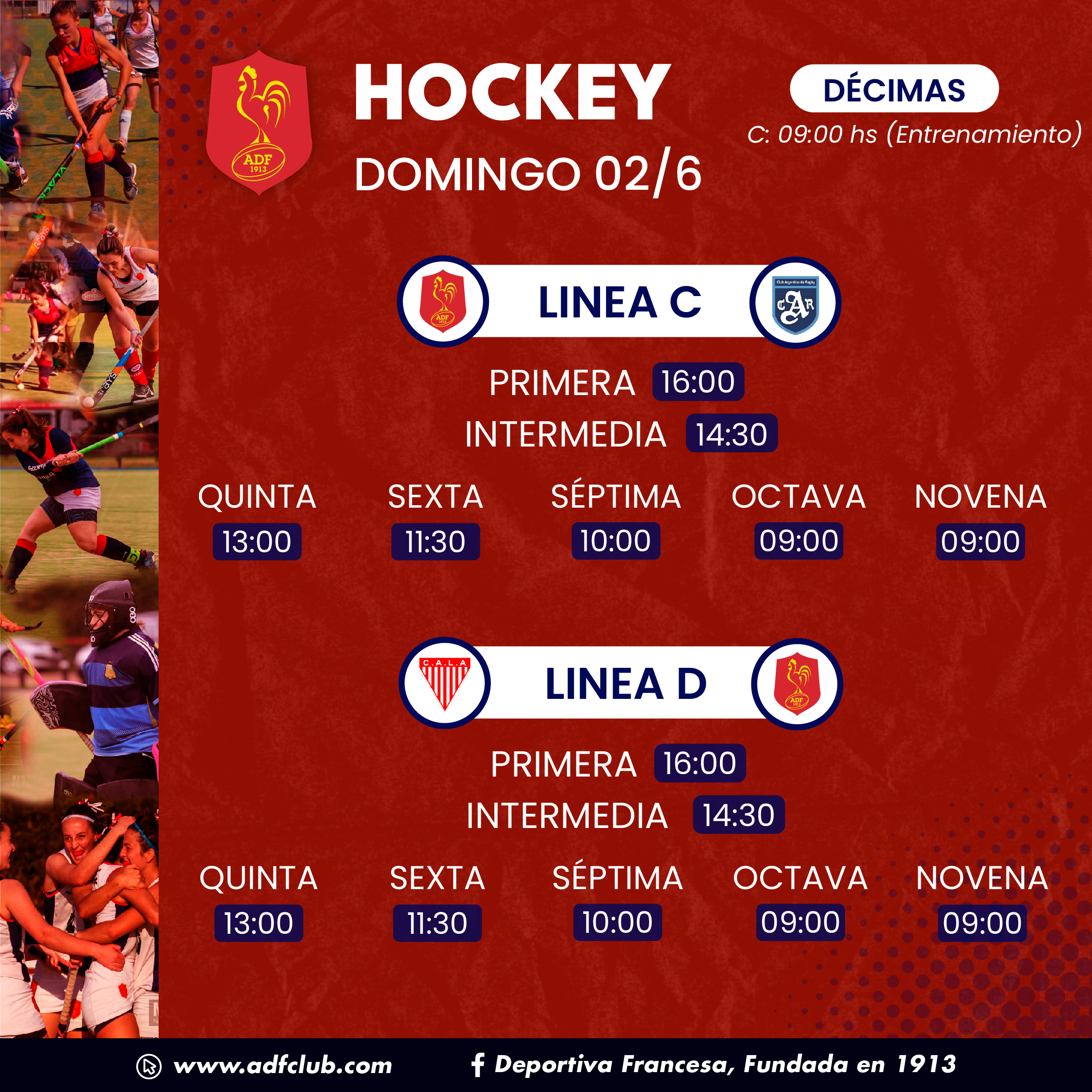 DOM 02/06 HOCKEY C y D: Horarios y formaciones