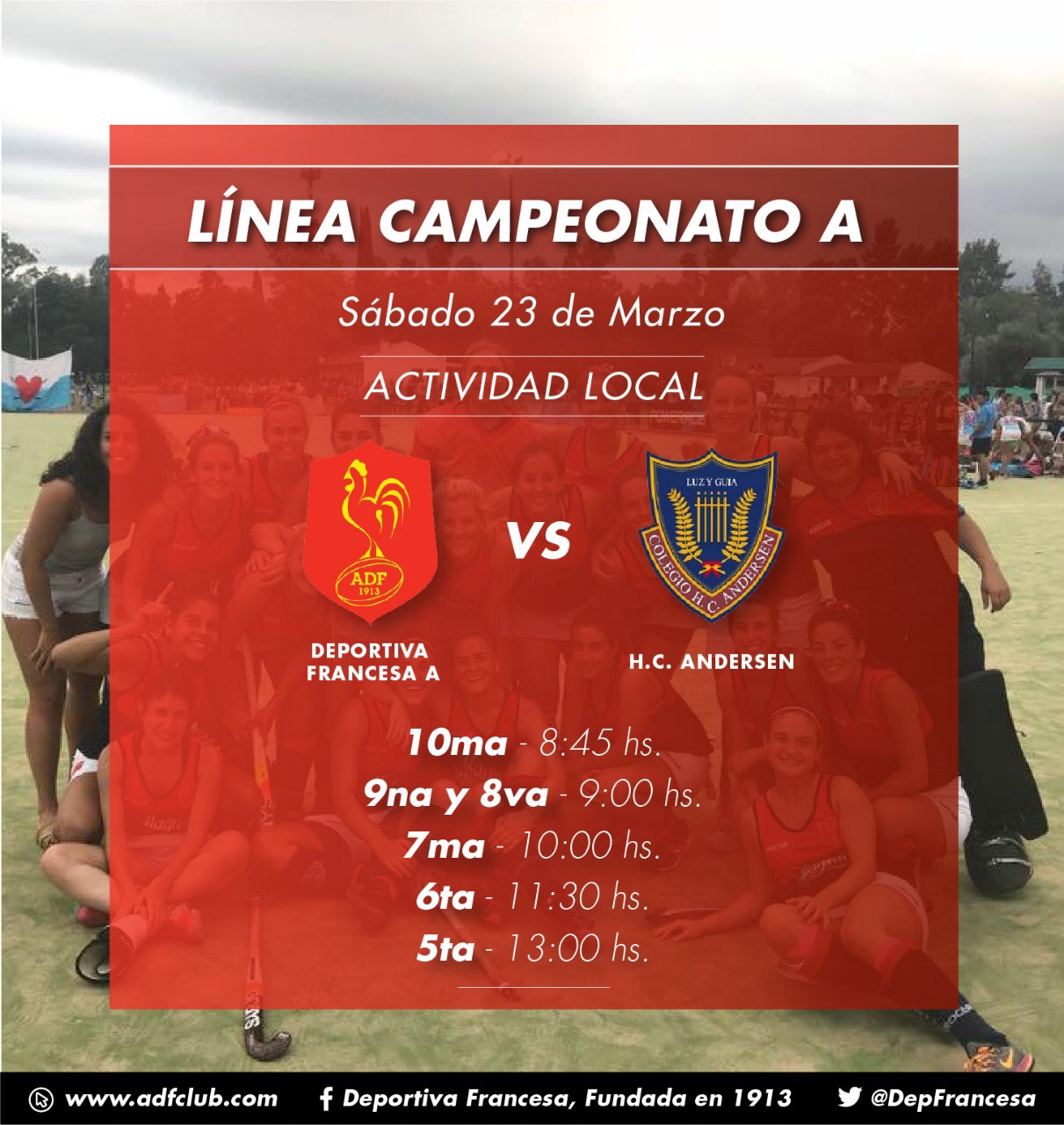 Línea Campeonato APor Deportiva Francesa / 22 marzo, 2019 Segunda fecha para la Línea A! Recibimos a @clubandersen #EstoEsFrancia